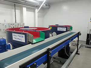 Виброгалтовки Walther Trowal CD 600 (2 шт.), сушка G500 и система рециркуляции компаунда ZM 03-FL производительностью 1000 л/час уже прошли тестирование и комплексную наладку в заводских условиях, получив высокую оценку конструкторско-технологической службы “ВЗСП”. Основной задачей галтовочной линии будет снятие заусенцев и улучшение качества поверхностей сепараторов подшипников.